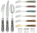 La collection insolent noir argent massif : Dernière création en argent massif de la maison Ercuis, l’insolent s’inspire de la renaissance italienne, siècle d’or du serti. Son manche aux couleurs vives est habillé d’une grille d’argent aux arabesques légères et élégantes. Proche de la joaillerie, la fabrication de ce modèle de prestige nécessite un soin particulier, une grande minutie et un savoir-faire ancestral. L’insolent se marie avec distinction aux décors de prestige de la société raynaud, maître porcelainier à limoges, et séduit une clientèle raffinée qui sait apprécier le délicat travail de l’orfèvre. De la mise en scène sophistiquée d’une table richement décorée à l’élégance d’un intérieur sobre, ce couvert original tout en délicatesse, permettra à chacun de dresser une table unique. L’insolent n’a pas fini de se faire remarquer. . .